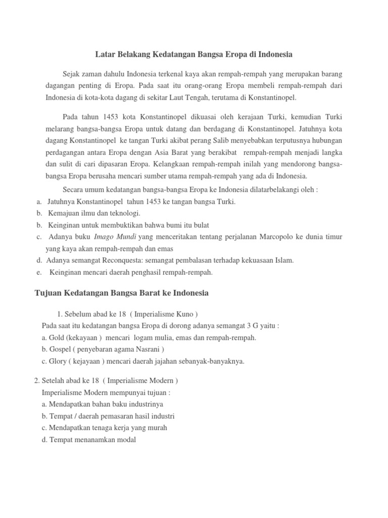 DOC) Latar Belakang Masuknya Bangsa Eropa Ke Indonesia | Putu Wiwi - Academia.edu