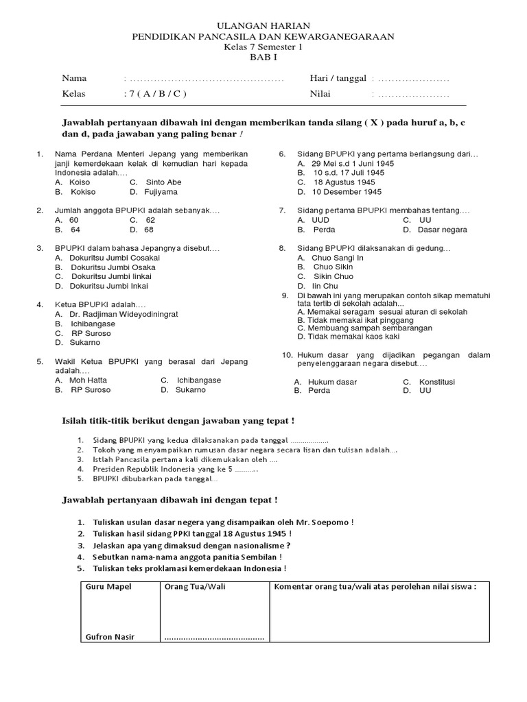 soal pkn kelas 7tolong jawab╥﹏╥ - Brainly.co.id