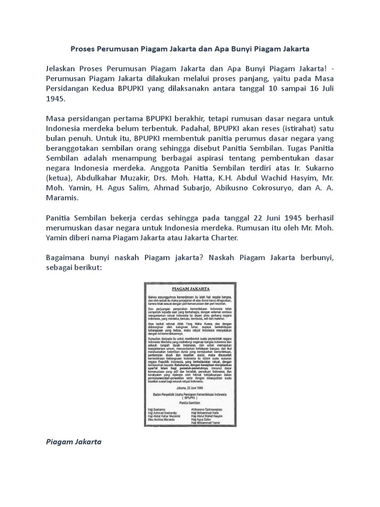 Anggota Panitia Sembilan dan Isi Piagam Jakarta - Berpendidikan.Com