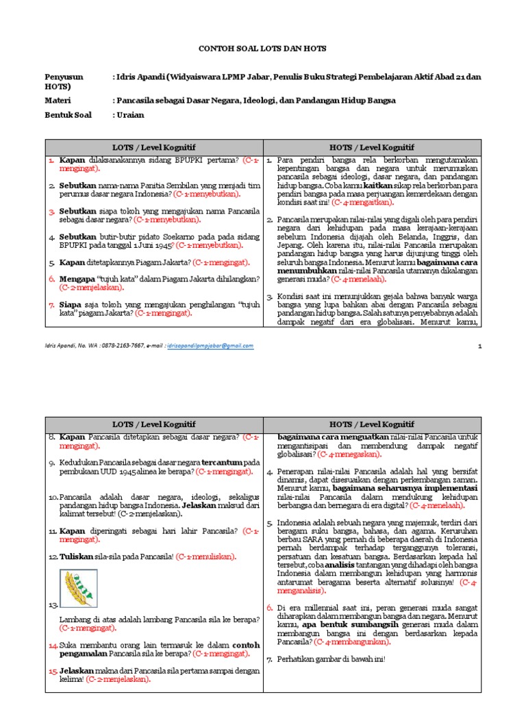 CONTOH SOAL LOTS DAN HOTS_PANCASILA_URAIAN