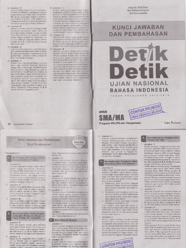 Pembahasan Buku Detik Detik UN Bahasa Indonesia untuk Program IPA, IPS, dan Keagamaan