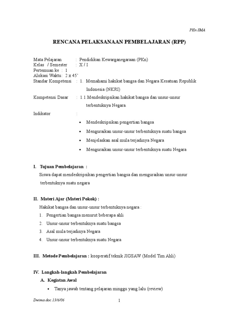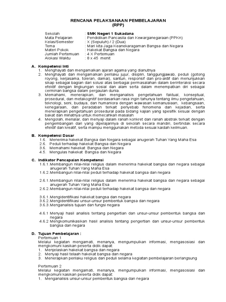 RENCANA PELAKSANAAN PEMBELAJARAN (RPP) hakikat bangsa d …
