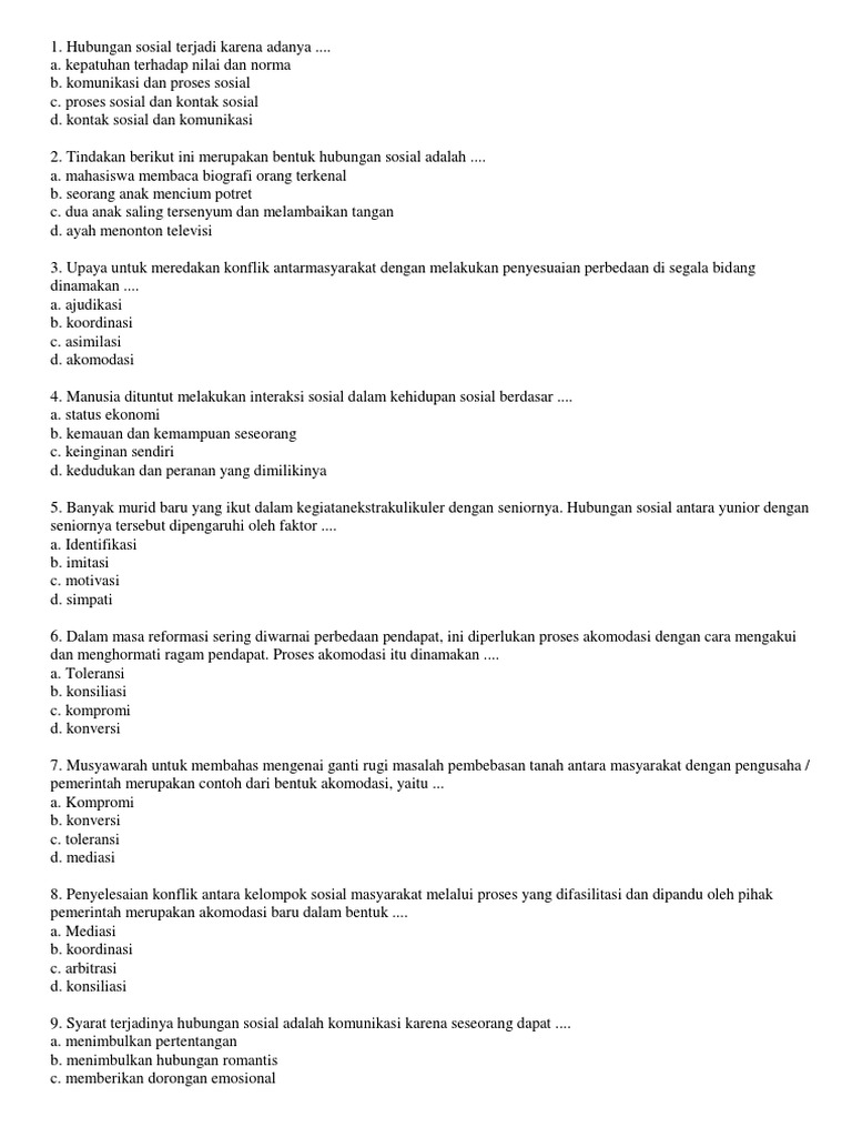 50 Soal IPS Bab Interaksi Sosial & Jawabannya (Pilgan, Essay) - Muttaqin id