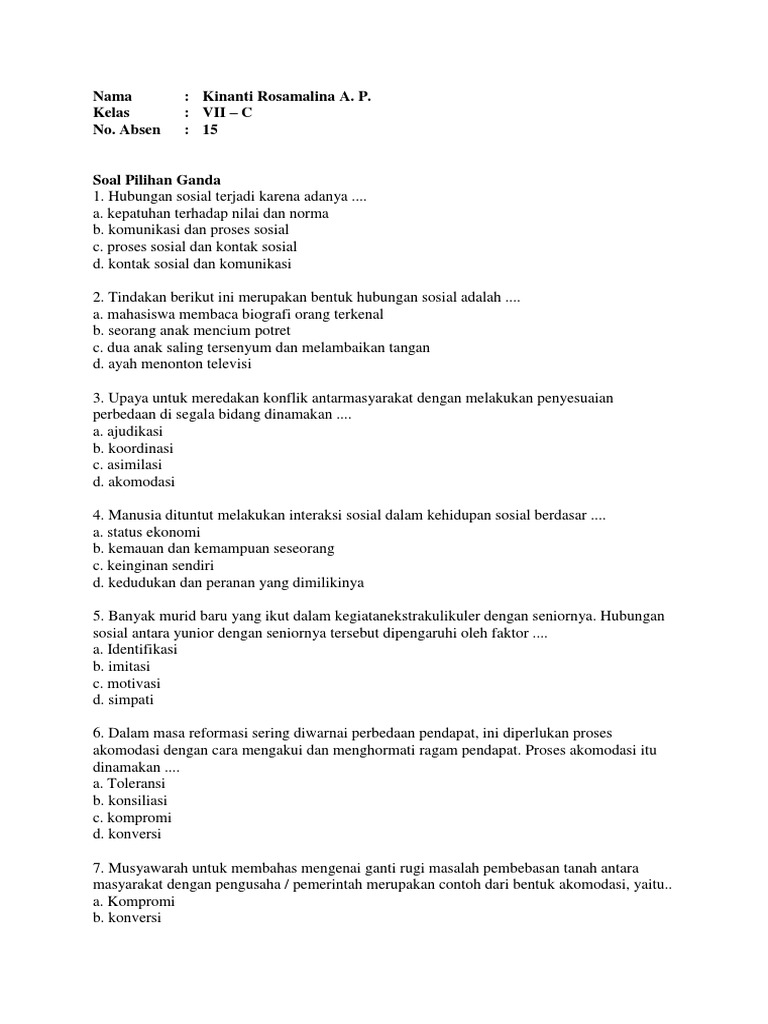 Yulianaze Blogger: Latihan soal “Interaksi Sosial” IPS kls 7