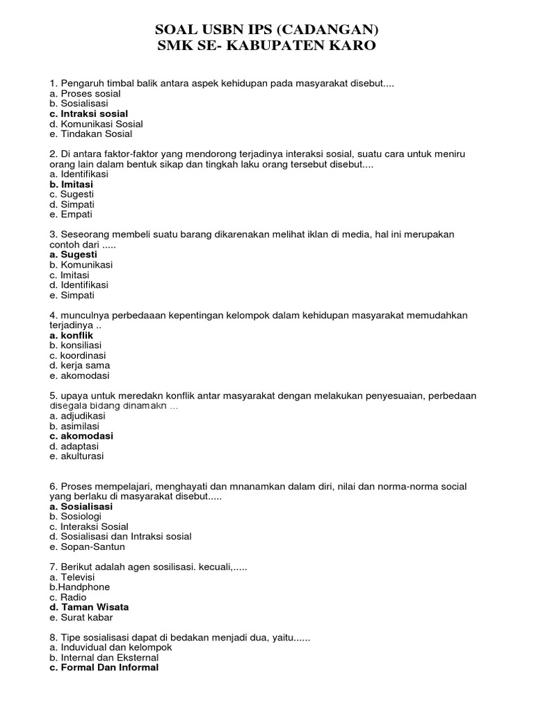 Soal Usbn Ips (Cadangan) Smk Se-Kabupaten Karo: c. Intraksi sosial