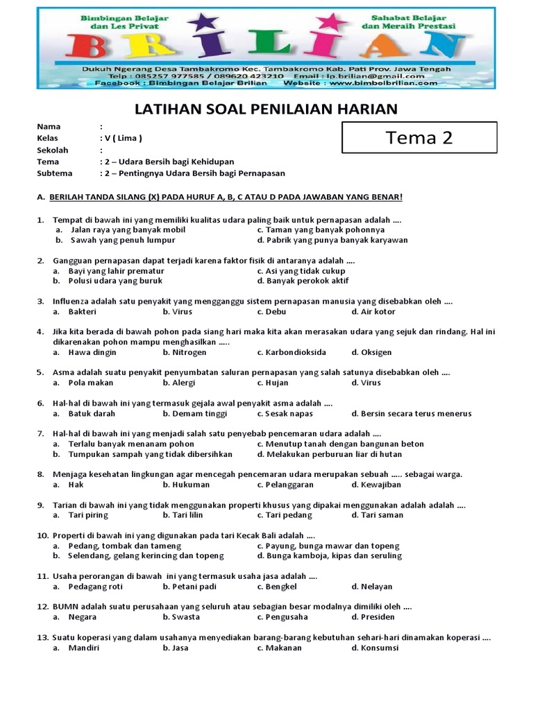 Soal Tematik Kelas 5 SD Tema 2 Subtema 2 Pentingnya Udara Bersih …