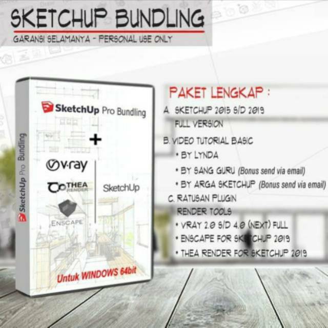 Jual Sketchup 2017 2018 Plus Vray, Tutorial Serta Ratusan Plugin …