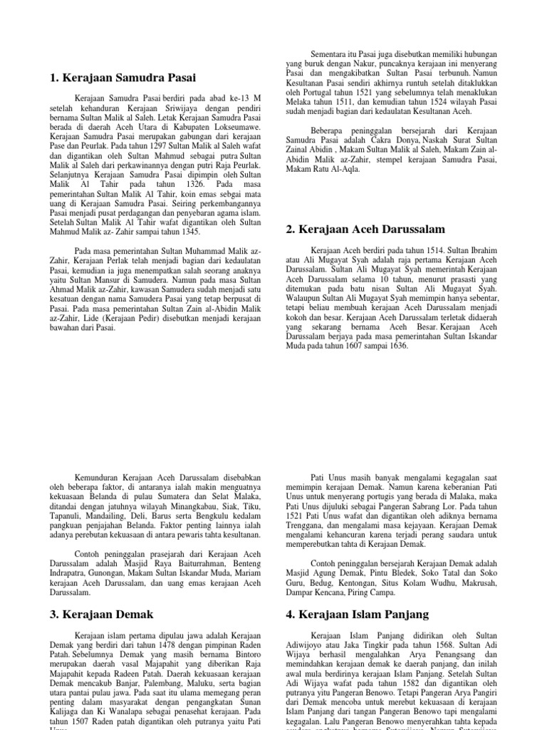Sejarah Kerajaan Islam di Indonesia - Samudera Pasai terletak di Aceh, dan merupakan kerajaan Islam - [PDF Document]