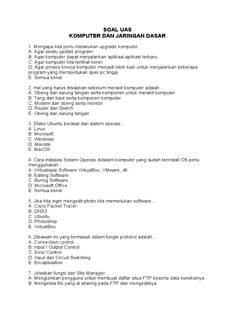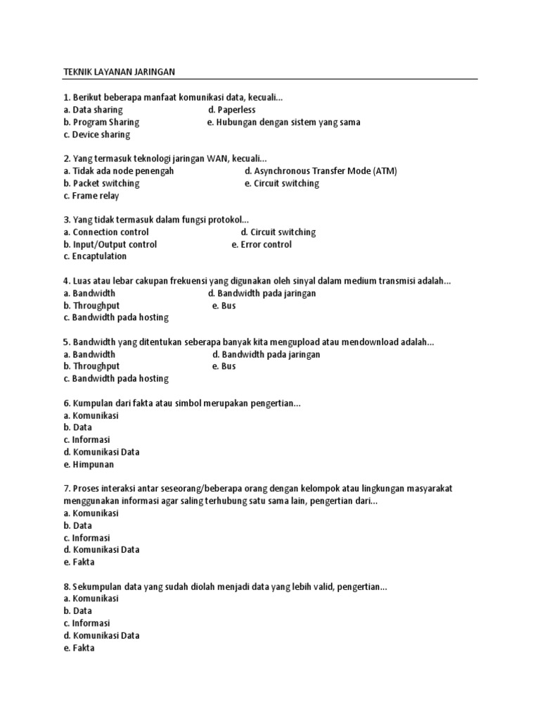 50 Contoh Soal TKJ Kelas X Pilihan Ganda dan Jawabannya - Manglada …