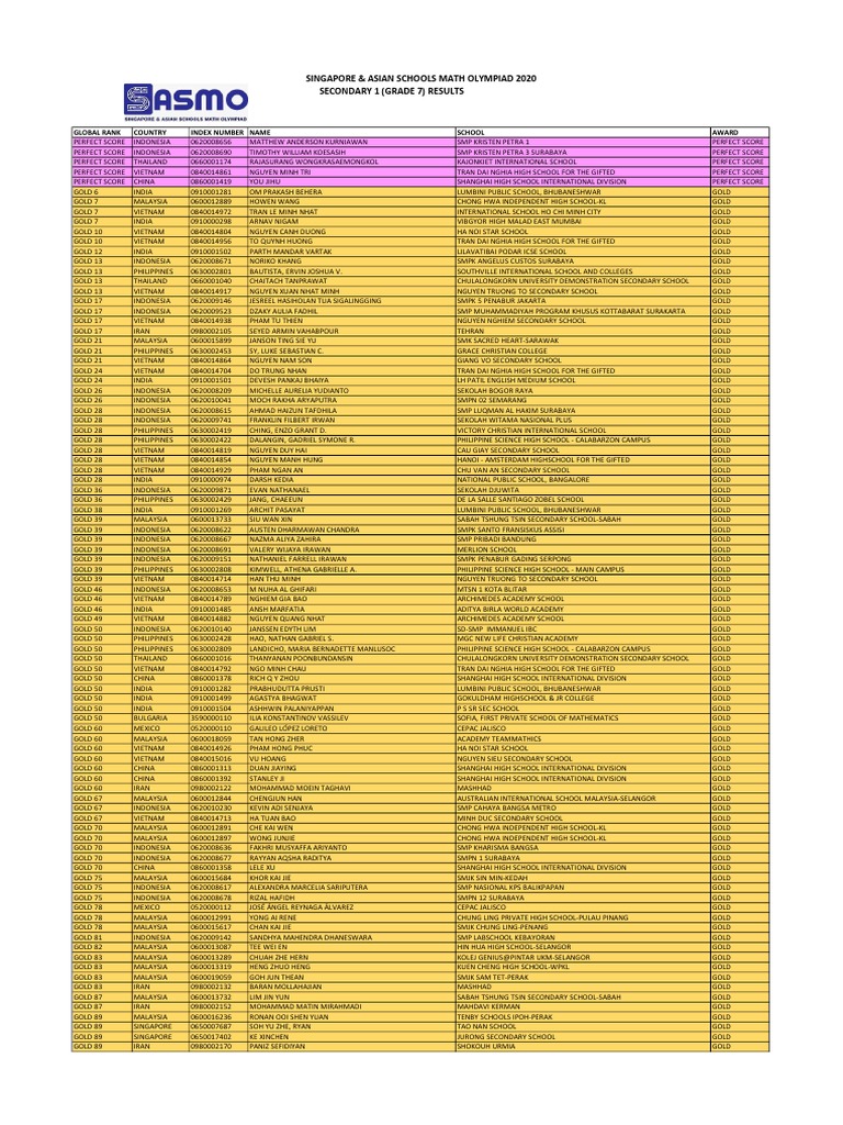 SASMO 2020 GRADE 7 RANK | High Schools And Secondary Schools | Schools